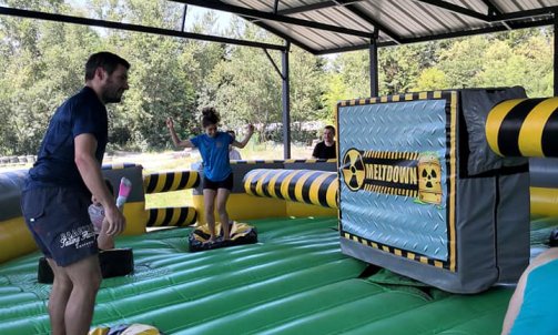 Venez vous défier sur la balayette infernale. Sur un grand boudin géant, un axe équipé de 2 bras tourne dans un sens puis dans l’autre. Grâce à ses vitesses modifiables, la balayette infernale ne cessera de vous déstabiliser.