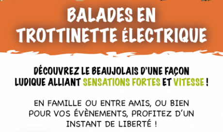 En famille ou entre amis, montez sur une de nos trottinettes électrique et partez à l’aventure lors d’une balade le long de la Saône, ou encore en randonnée dans le Beaujolais.